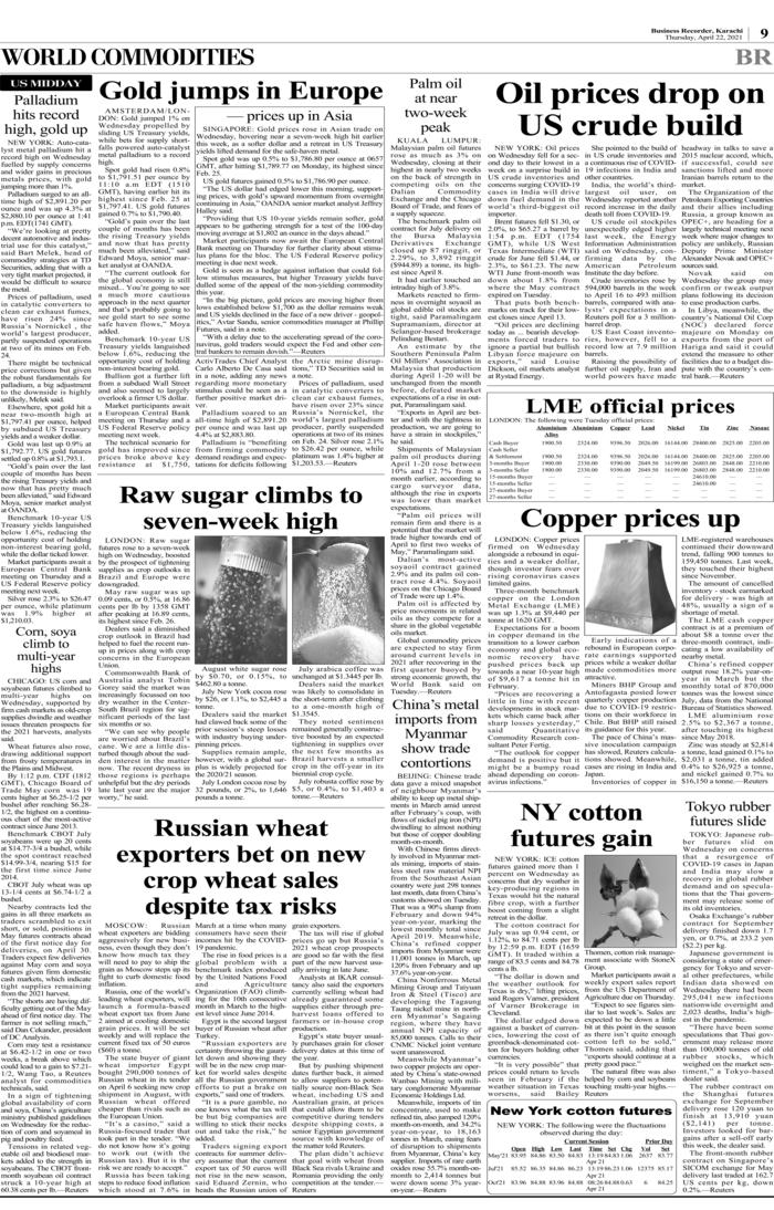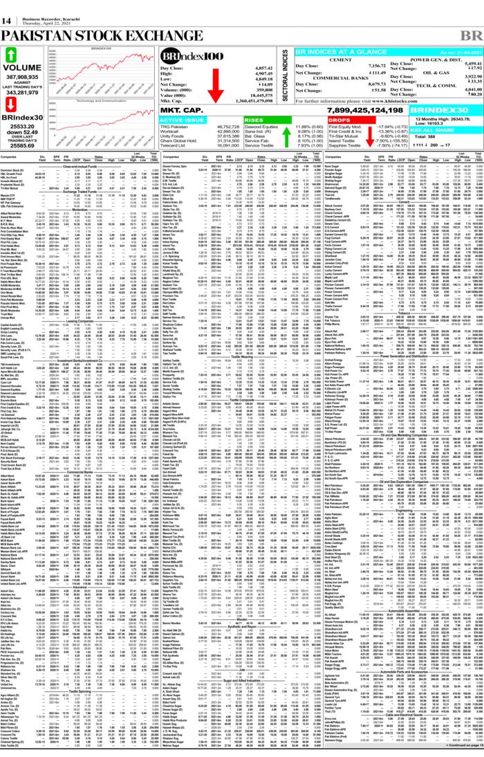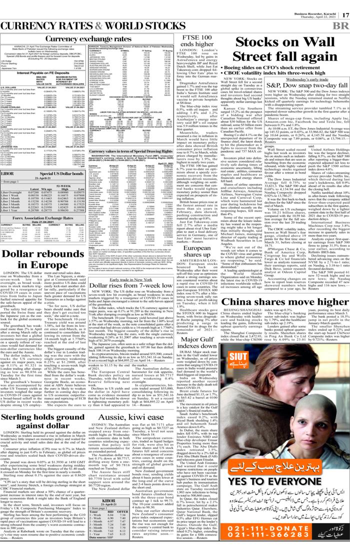 Apr 23, 2021 PRINT EDITION ► BR MARKETS ► Dollar to PKR ►